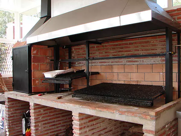 Esta barbacoa esta compuesta por 2 guías laterales, por las cuales sube y baja la parrilla, y lleva una manivela lateral que se puede colocar a la izquierda o derecha.